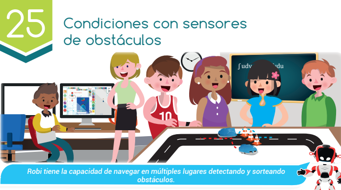 desplazamientos (adelante, al lado, hacia atrás, giros) para que Robi se mueva